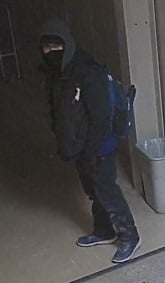 On Sunday, January 10th, 2021, the Sheboygan Police Department investigated a burglary at Sheboygan Christian School located at 929 Greenfield Avenue. At 8:26 PM a suspect made an entry and took undisclosed items from the school. The suspect is believed to be a white male, approximately 5’ 07” wearing a baseball hat, hood, mask and gloves. He was also wearing glasses, a blue Nike sweatshirt under a vest, dark pants, blue shoes and was wearing a blue backpack.